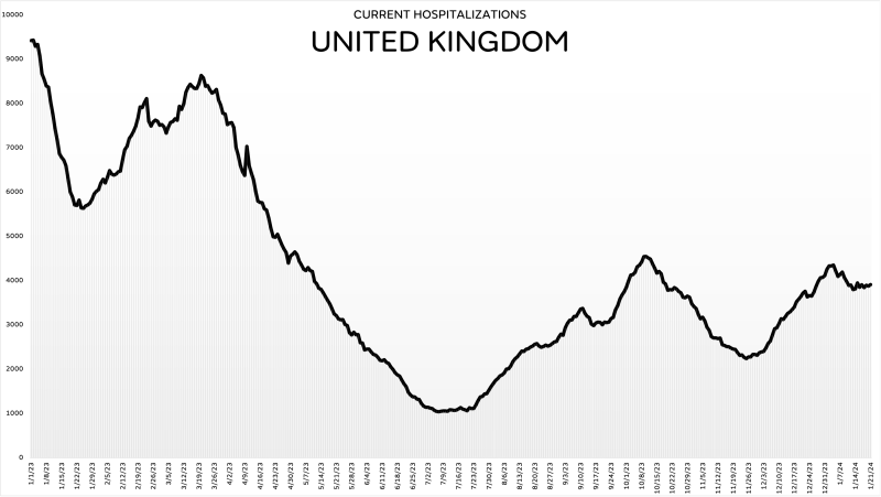 This January it’s around 3,900, and remaining flat to trending downwards, despite the JN.1 “surge.”