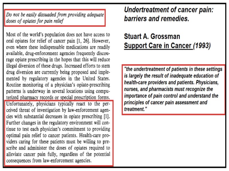Studies at the time (1990s) pointed to an under-treatment of pain, especially chronic pain, as many doctors were cautious about prescribing narcotics.
