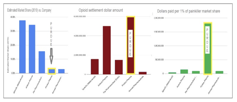 The irony is stark: despite holding only a 3.3% market share, Purdue paid settlements at a rate 43 times higher than the largest opioid producer. Precisely like a wealthy spouse in a bitter divorce, Purdue bore the brunt of public and legal outrage, while poorer industry players without abuse-deterrent strategies escaped scrutiny. The government killed Purdue, yet (as with post-settlement tobacco) opioids remain with the challenge (e. g. fentanyl) greater than ever.