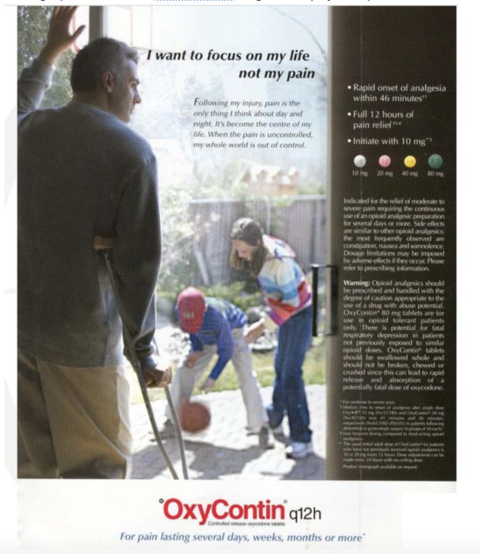Purdue Pharma’s target audience for OxyContin was never the “addict” demographic but those unfortunates in genuine physical pain via illness or injury.