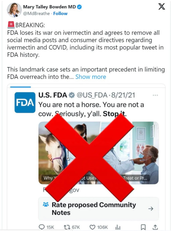 FDA loses its war on ivermectin and agrees to remove all social media posts and consumer directives regarding ivermectin and [Covid], including its most popular tweet in FDA history. This landmark case sets an important precedent in limiting FDA overreach into the doctor-patient relationship.