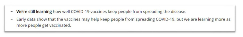 This campaign was even more disingenuous and purposefully misleading than previously realized. The “Stop the Spread” publicity blitz hid in plain sight a message from the CDC that even they didn’t know whether the vaccines actually stopped infection or transmission. The report shared a screenshot of a page from the Biden administration’s marketing that specifically said “science” wasn’t sure how well the vaccines worked against infection.