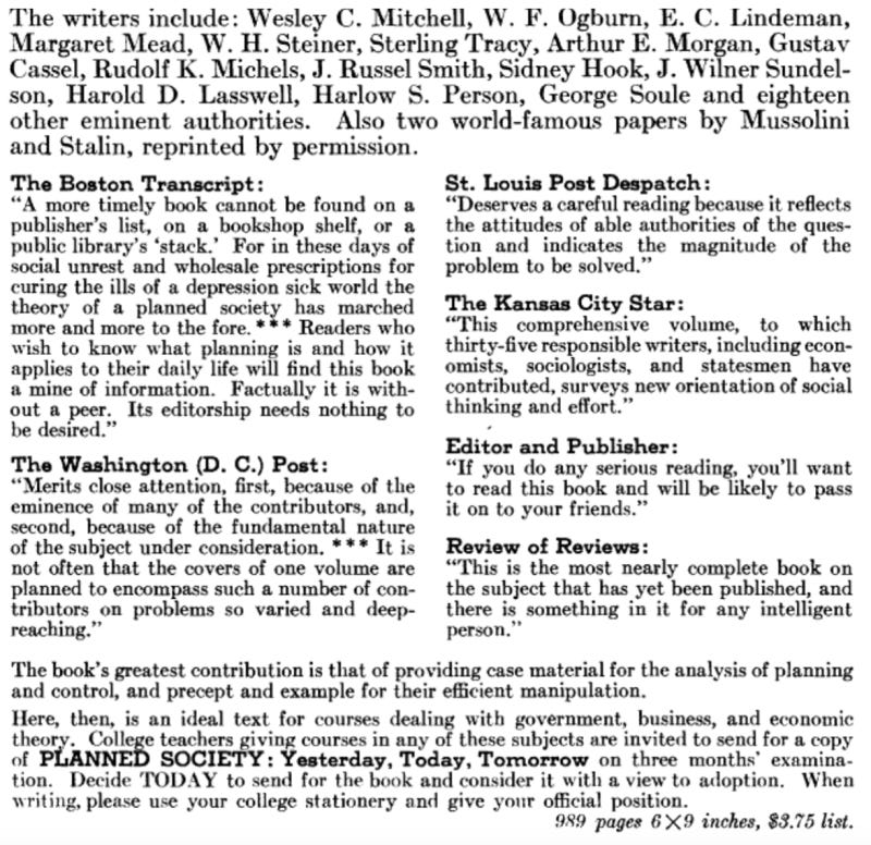 A book by that name appeared in 1937 as published by the prestigious Prentice-Hall, and it included contributions by top academics and high-profile influencers. It was highly praised by all respectable outlets at the time.