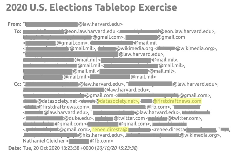 The exercise was also attended by the New York Times, Washington Post, Stanford University academics, Rolling Stone Magazine, CNN, NBC, the Carnegie Endowment for International Peace, as well as Twitter and Facebook.