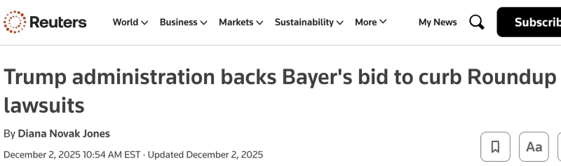 The bill rider got a lot of pushback from my readers and many other constitutents during July-September 2025, when it passed the EPA’s Appropriations committee on a voice vote, thereby shielding individual members from having to own up to their vote. Apparently it was not going to go through the whole House easily (lots of political capital would have been expended by every member voting for it) and so far, the bill that included the pesticide rider has not been brought to a House vote. There was no companion bill in the Senate, another clue that Congressmembers did not want their fingerprints on this obvious giveaway to Big Pesticide and Bayer at the expense of citizens.