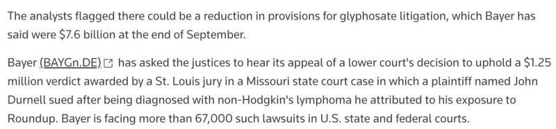 Bayer hinted it could spin off part of the company, leaving all the liability in an underfunded spinoff that would not be able to pay claims.