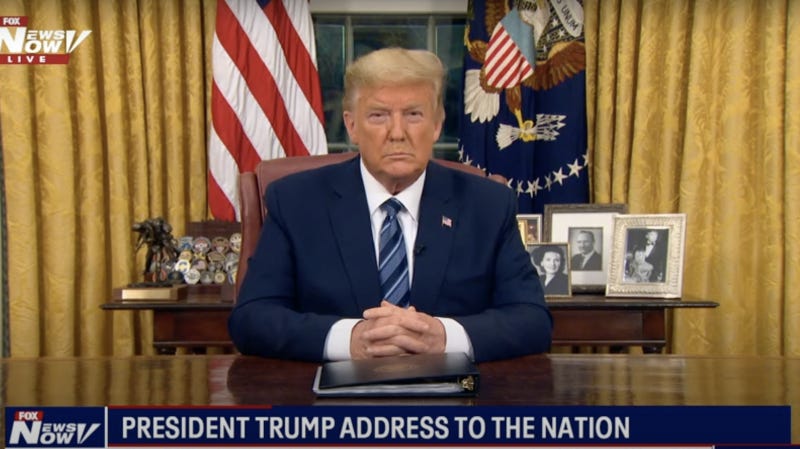 President Trump was not at his best, very obviously. He made two very serious missteps. He said he was blocking travel from Europe but in fact the text of his order pertained only to foreign nationals, not American citizens. Further, he disastrously misread the teleprompter and said that goods traffic would be stopped too.